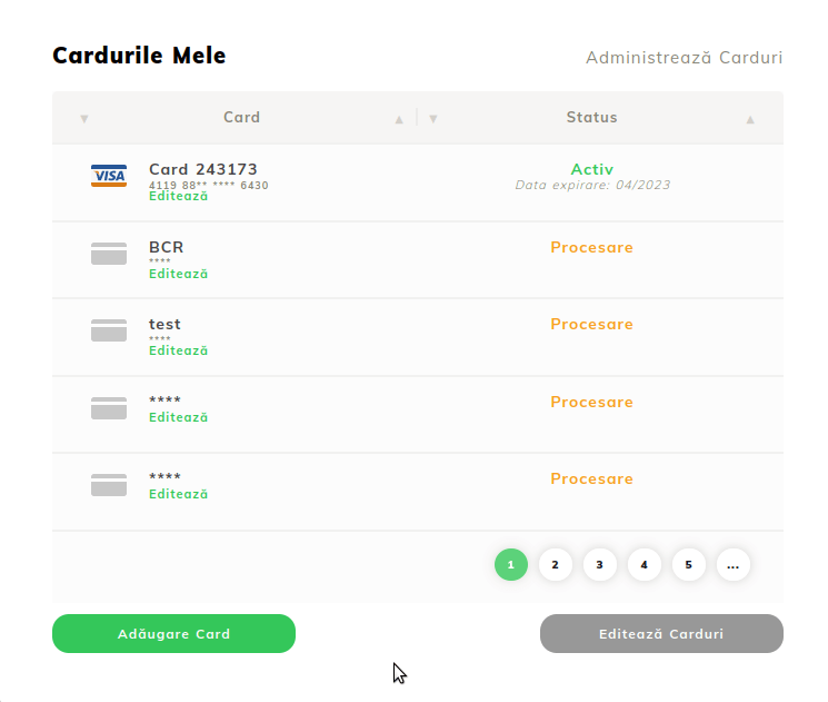 - Po dodaniu karty przeanalizujemy interfejs zarządzania kartami w koncie.