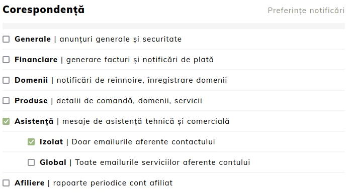 - Global - Korespondencja będzie wysyłana dla wszystkich usług posiadanych w koncie.
