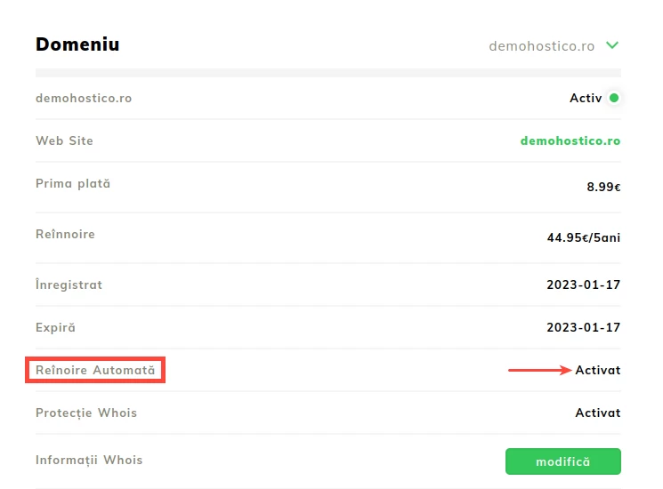 - Uwaga - przy włączonej tej opcji z Hostico nie będą otrzymywane powiadomienia dotyczące wygaśnięcia domeny. Powinna być aktywowana tylko dla domen, które nie będą już używane/odnowienie których nie jest już pożądane.
