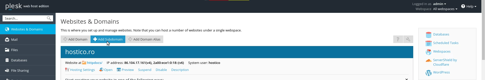 W tym samouczku pokażemy, jak dodać subdomenę w panelu sterowania Plesk.