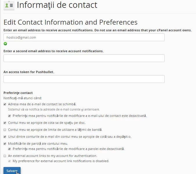 Uwaga: Aktywacja tych powiadomień pomoże nam uniknąć problemów z adresem e-mail z powodu braku miejsca, zarówno w przypadku całkowitego zajęcia, jak i w zakresie bezpieczeństwa naszego konta cPanel oraz nieautoryzowanej modyfikacji naszych danych logowania.