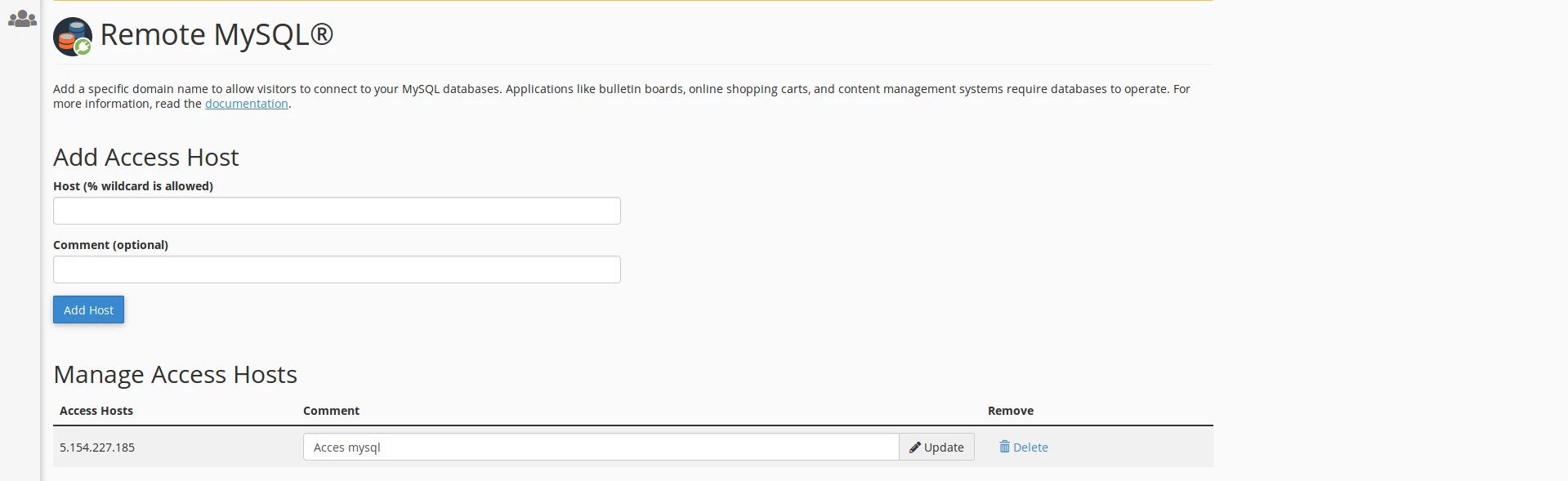 Konfiguracja zdalnego dostępu do MySQL® w cPanel