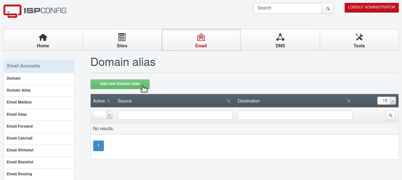 - Ta funkcja panelu ISPConfig umożliwia przekierowanie wszystkich e-maili przeznaczonych dla jednej domeny na inną domenę.