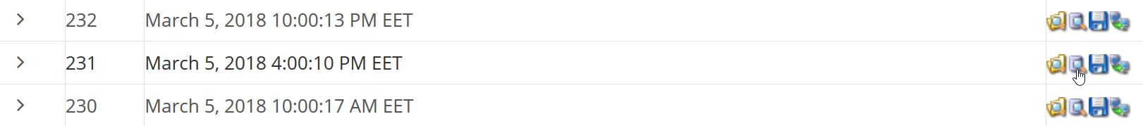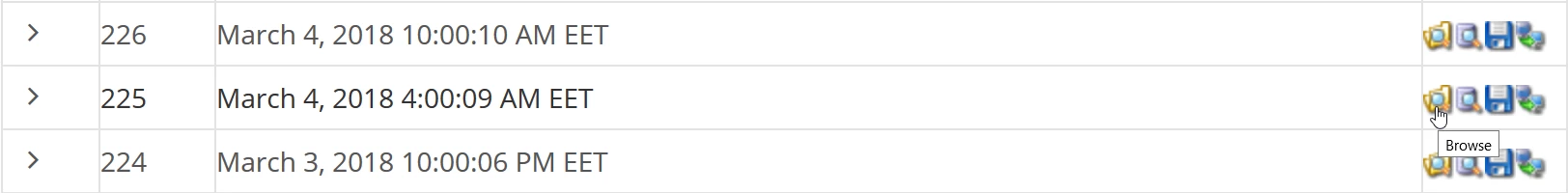 - Aby wyświetlić bazy danych zapisane z wybranego okresu, klikniemy na strzałkę ">".