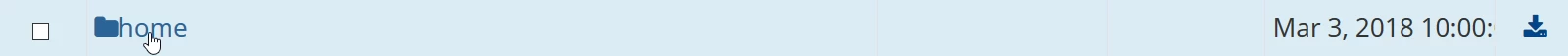 - Wybrany punkt przywracania zostanie otwarty. Tutaj możemy przeglądać kopię plików z wybranej daty. Klikniemy home, aby wejść do katalogu głównego konta hostingowego.