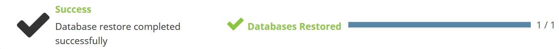 - Czas przywracania różni się w zależności od rozmiaru bazy danych. Po zakończeniu zostaniemy powitani komunikatem o sukcesie.