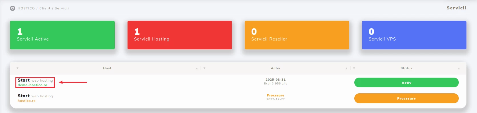 - konto klienta Hostico istniejące;