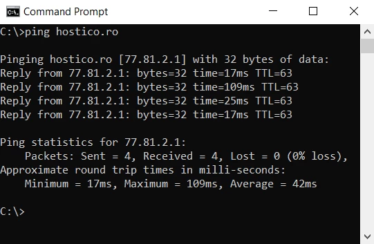 W naszym przykładzie widzimy, że adres IP związany z domeną hostico.ro to 77.81.2.1.